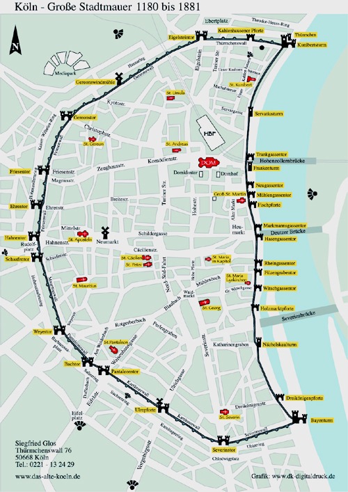 Stadtplan“Köln - Große Stadtmauer 1180 - 1881”Laminierter Druck,Format:21,5cm x 30,4cm